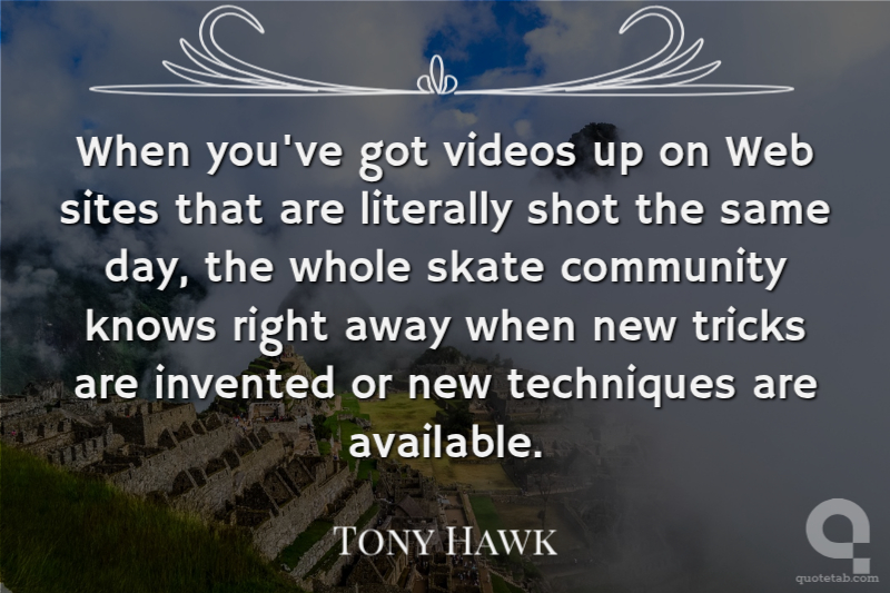 When you've got videos up on Web sites that are literally shot the same day, the whole skate community knows right away when new tricks are invented or new techniques are available. Tony Hawk