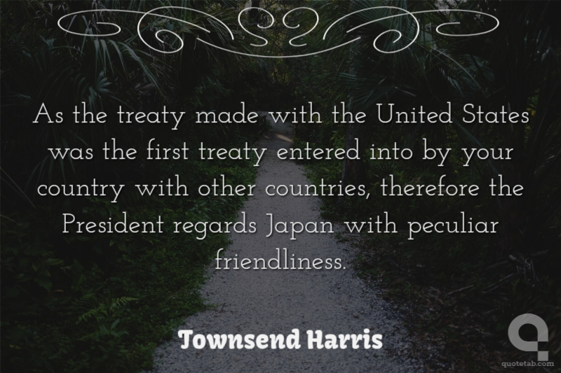 As the treaty made with the United States was the first treaty entered into by your country with other countries, therefore the President regards Japan with peculiar friendliness. Townsend Harris
