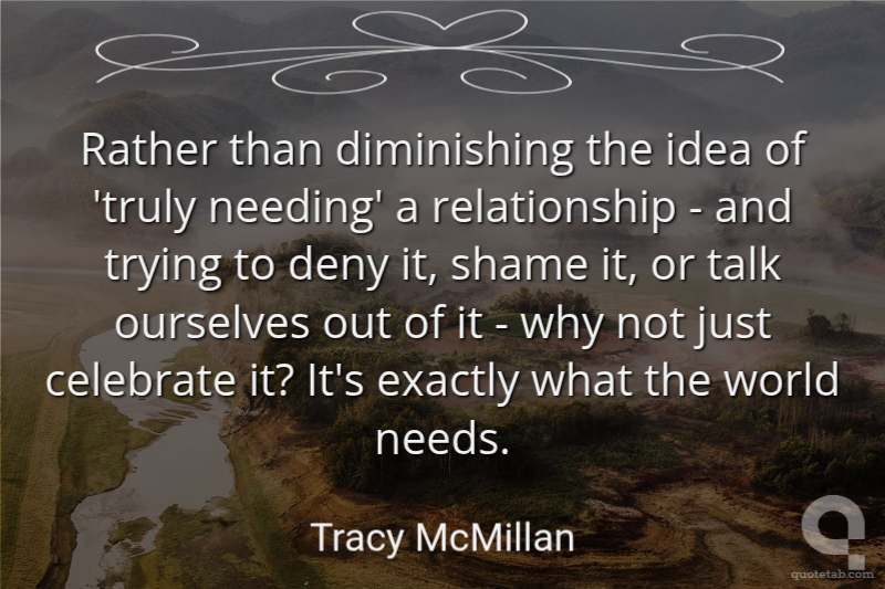 Rather than diminishing the idea of 'truly needing' a relationship - and trying to deny it, shame it, or talk ourselves out of it - why not just celebrate it? It's exactly what the world needs. Tracy McMillan