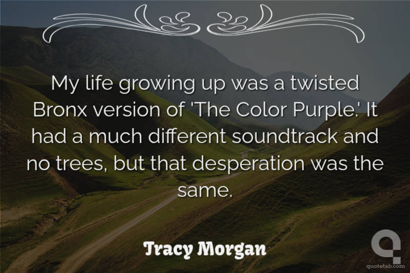 My life growing up was a twisted Bronx version of 'The Color Purple.' It had a much different soundtrack and no trees, but that desperation was the same. Tracy Morgan