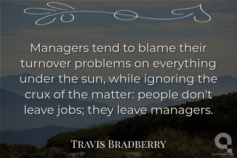 Managers tend to blame their turnover problems on everything under the sun, while ignoring the crux of the matter: people don't leave jobs; they leave managers. Travis Bradberry