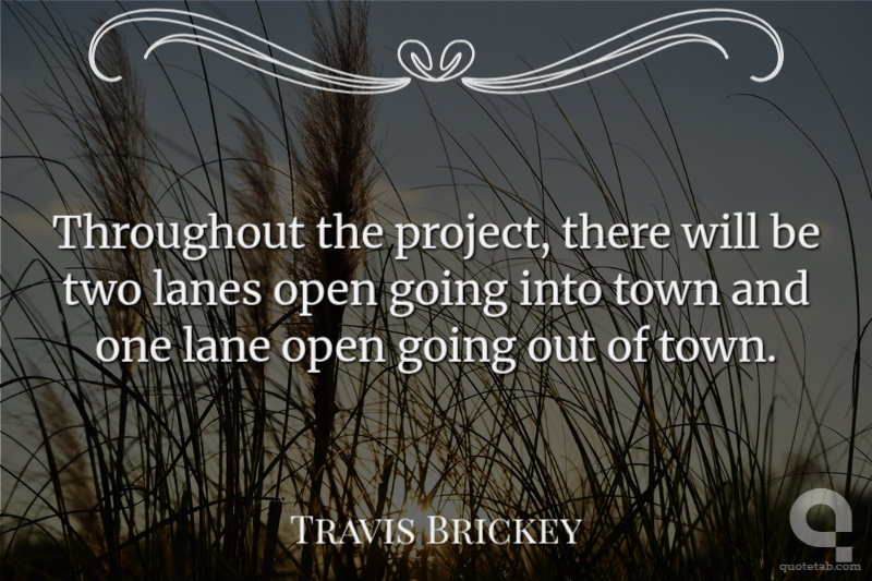 Throughout the project, there will be two lanes open going into town and one lane open going out of town. Travis Brickey