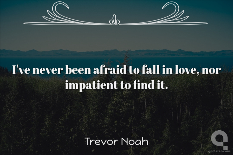 I've never been afraid to fall in love, nor impatient to find it. Trevor Noah