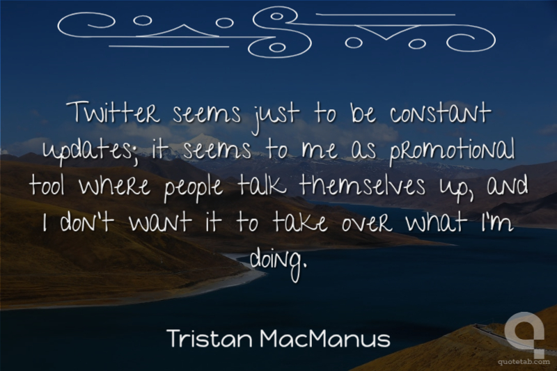Twitter seems just to be constant updates; it seems to me as promotional tool where people talk themselves up, and I don't want it to take over what I'm doing. Tristan MacManus