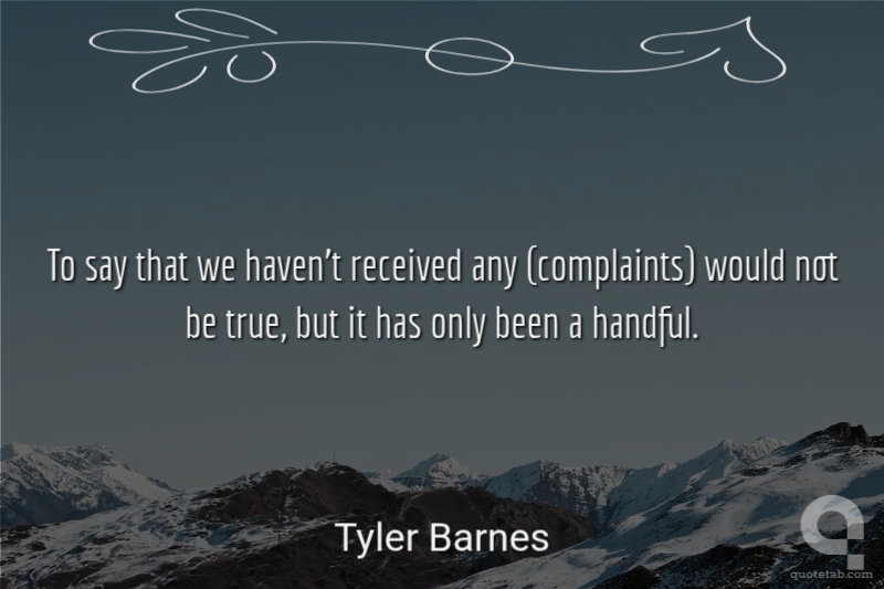 To say that we haven't received any (complaints) would not be true, but it has only been a handful. Tyler Barnes
