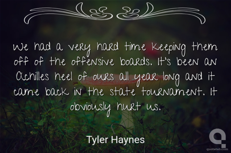 We had a very hard time keeping them off of the offensive boards. It's been an Achilles heel of ours all year long and it came back in the state tournament. It obviously hurt us. Tyler Haynes