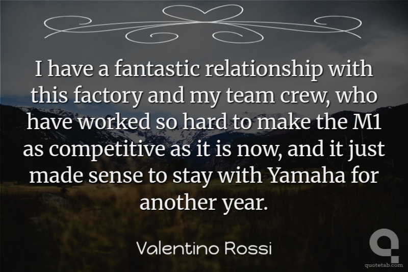 I have a fantastic relationship with this factory and my team crew, who have worked so hard to make the M1 as competitive as it is now, and it just made sense to stay with Yamaha for another year. Valentino Rossi