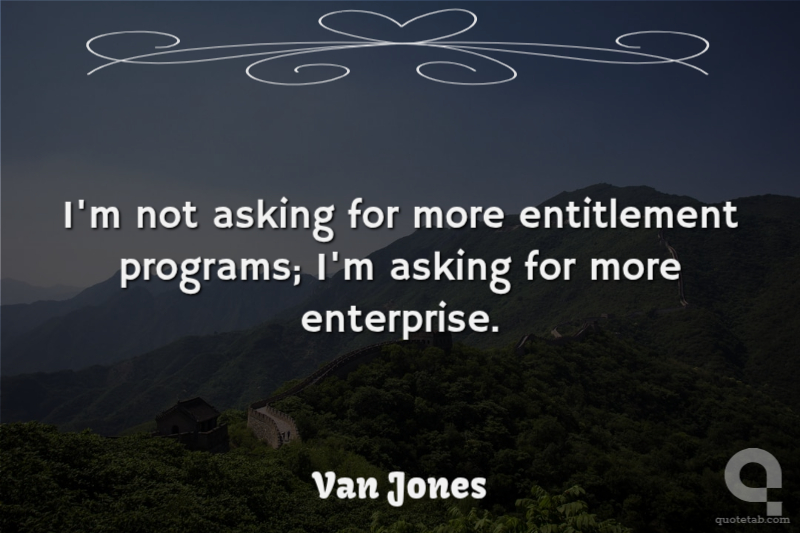 I'm not asking for more entitlement programs; I'm asking for more enterprise. Van Jones