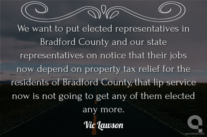 We want to put elected representatives in Bradford County and our state representatives on notice that their jobs now depend on property tax relief for the residents of Bradford County, that lip service now is not going to get any of them elected any more. Vic Lawson