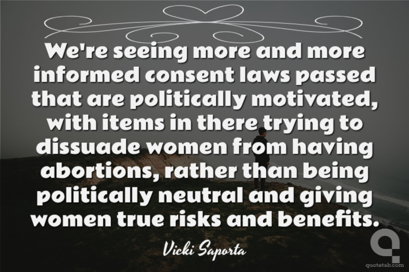 We're seeing more and more informed consent laws passed that are politically motivated, with items in there trying to dissuade women from having abortions, rather than being politically neutral and giving women true risks and benefits. Vicki Saporta