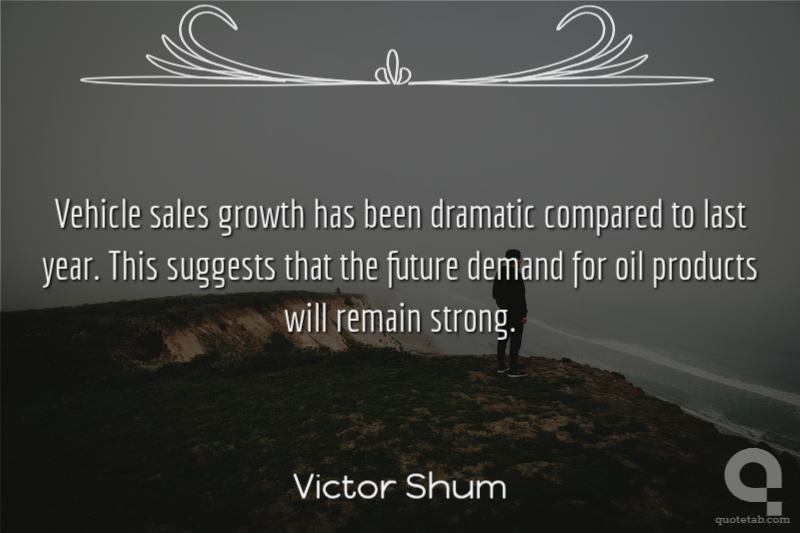 Vehicle sales growth has been dramatic compared to last year. This suggests that the future demand for oil products will remain strong. Victor Shum