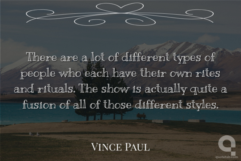 There are a lot of different types of people who each have their own rites and rituals. The show is actually quite a fusion of all of those different styles. Vince Paul