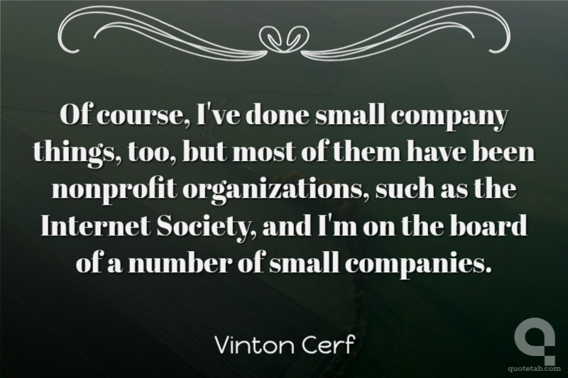 Of course, I've done small company things, too, but most of them have been nonprofit organizations, such as the Internet Society, and I'm on the board of a number of small companies. Vinton Cerf