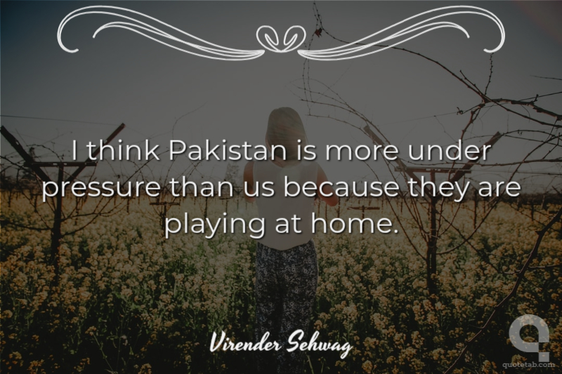 I think Pakistan is more under pressure than us because they are playing at home. Virender Sehwag