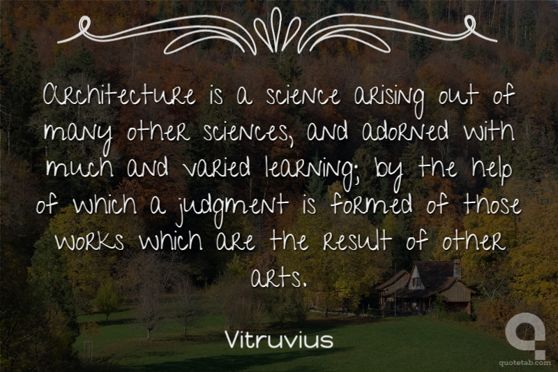 Architecture is a science arising out of many other sciences, and adorned with much and varied learning; by the help of which a judgment is formed of those works which are the result of other arts. Vitruvius