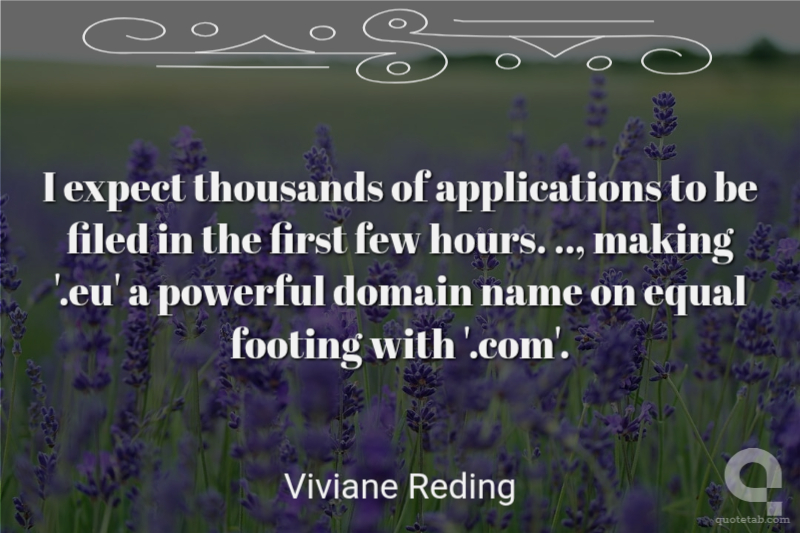 I expect thousands of applications to be filed in the first few hours. .., making '.eu' a powerful domain name on equal footing with '.com'. Viviane Reding