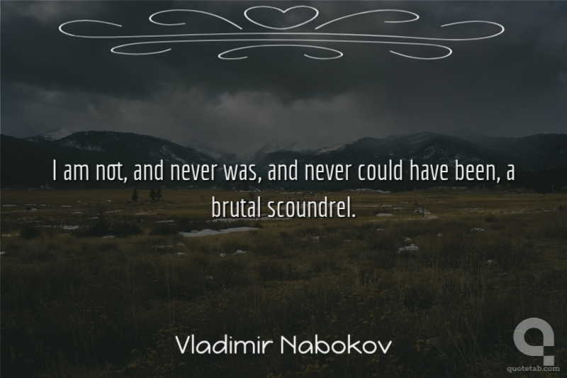 I am not, and never was, and never could have been, a brutal scoundrel. Vladimir Nabokov