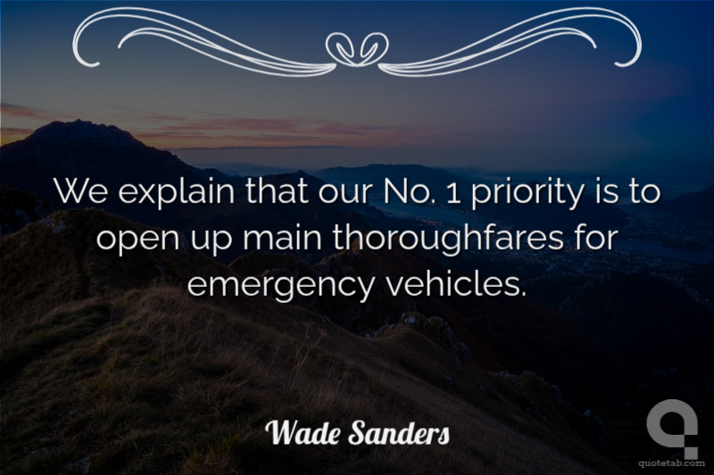 We explain that our No. 1 priority is to open up main thoroughfares for emergency vehicles. Wade Sanders