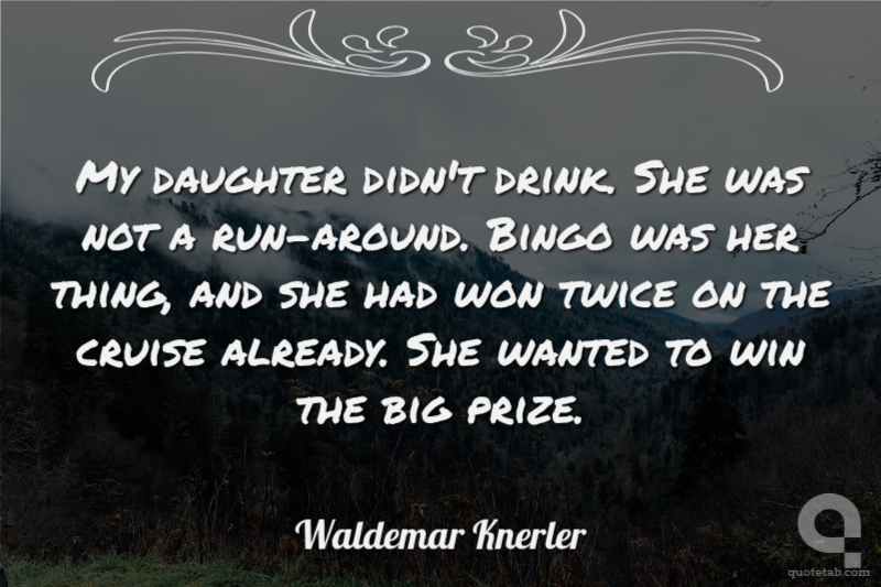My daughter didn't drink. She was not a run-around. Bingo was her thing, and she had won twice on the cruise already. She wanted to win the big prize. Waldemar Knerler