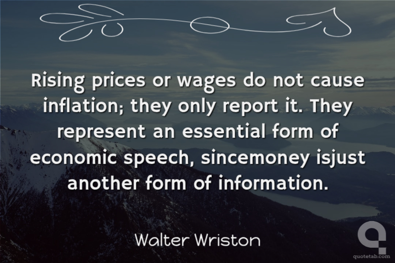 Rising prices or wages do not cause inflation; they only report it. They represent an essential form of economic speech, sincemoney isjust another form of information. Walter Wriston