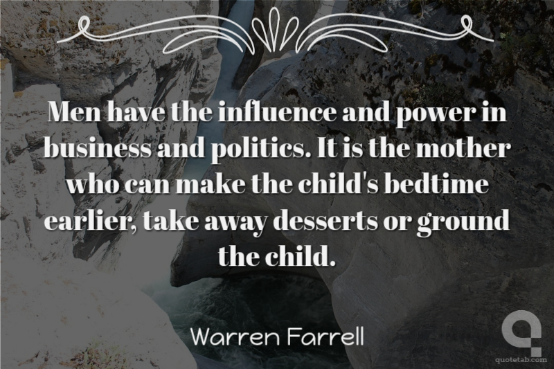 Men have the influence and power in business and politics. It is the mother who can make the child's bedtime earlier, take away desserts or ground the child. Warren Farrell