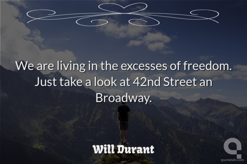 We are living in the excesses of freedom. Just take a look at 42nd Street an Broadway. Will Durant