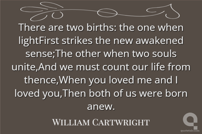 There are two births: the one when light First strikes the new awakened sense; The other when two souls unite, And we must count our life from thence, When you loved me and I loved you, Then both of us were born anew. William Cartwright
