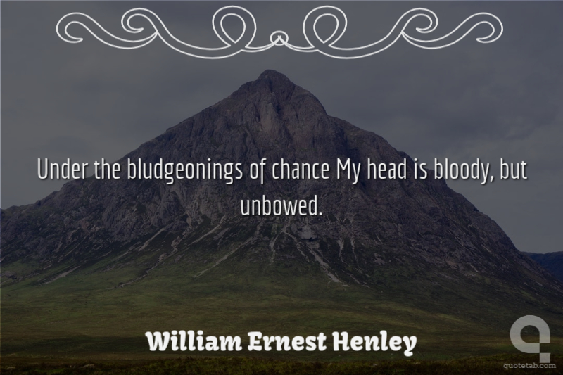 Under the bludgeonings of chance My head is bloody, but unbowed. William Ernest Henley
