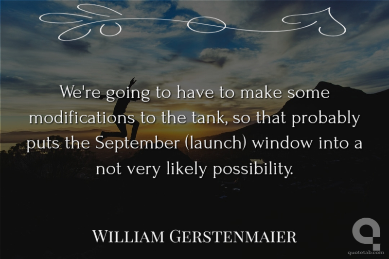 We're going to have to make some modifications to the tank, so that probably puts the September (launch) window into a not very likely possibility. William Gerstenmaier