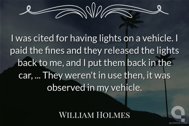 I was cited for having lights on a vehicle. I paid the fines and they released the lights back to me, and I put them back in the car, ... They weren't in use then, it was observed in my vehicle. William Holmes