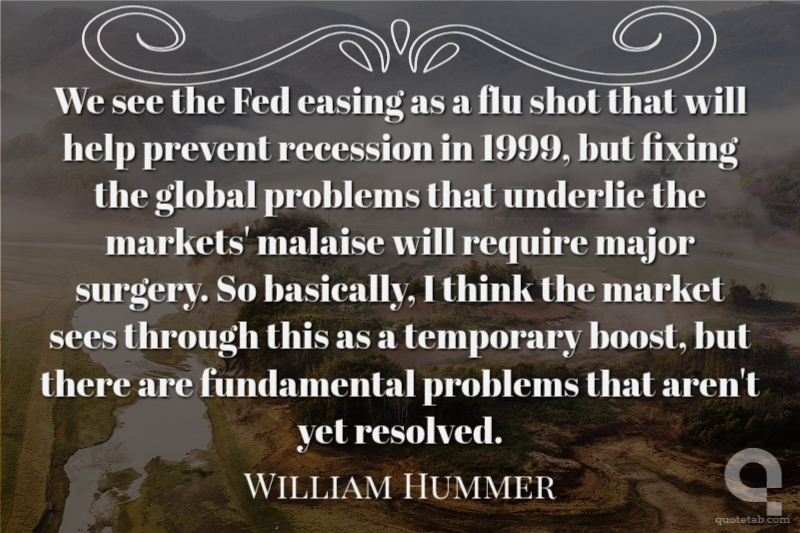 We see the Fed easing as a flu shot that will help prevent recession in 1999, but fixing the global problems that underlie the markets' malaise will require major surgery. So basically, I think the market sees through this as a temporary boost, but there are fundamental problems that aren't yet resolved. William Hummer