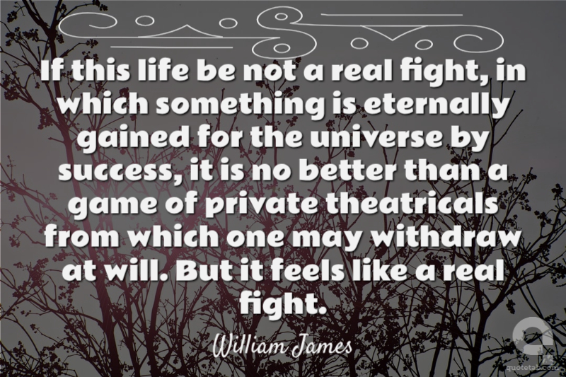 If this life be not a real fight, in which something is eternally gained for the universe by success, it is no better than a game of private theatricals from which one may withdraw at will. But it feels like a real fight. William James