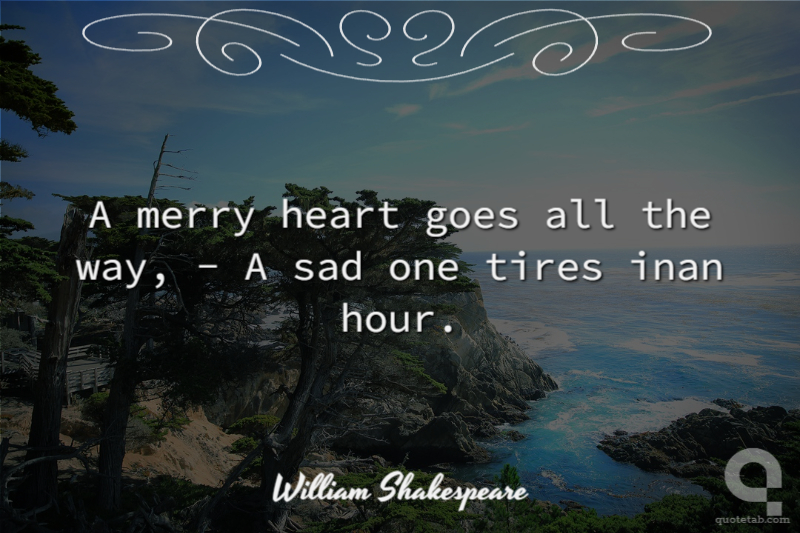A merry heart goes all the way, - A sad one tires inan hour. William Shakespeare