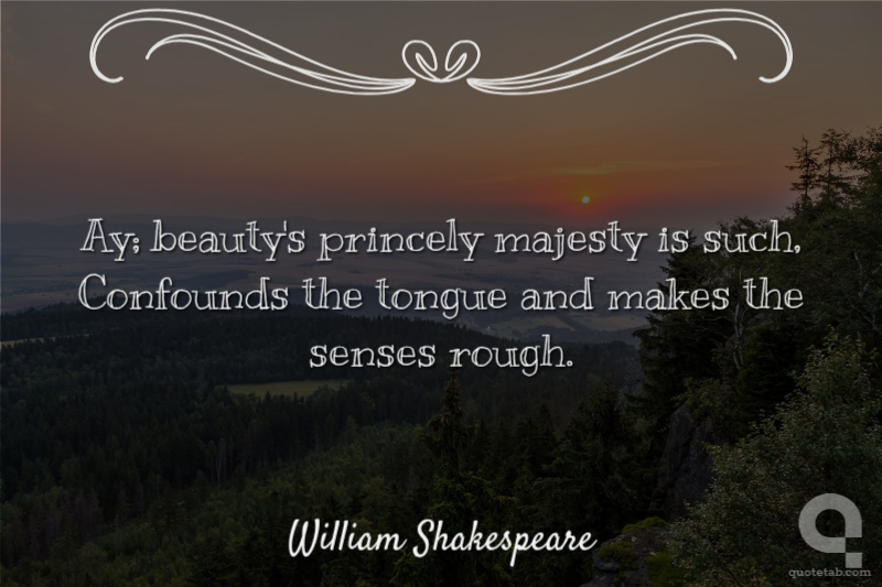 Ay; beauty's princely majesty is such, Confounds the tongue and makes the senses rough. William Shakespeare