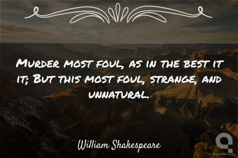 Murder most foul, as in the best it it; But this most foul, strange, and unnatural. William Shakespeare