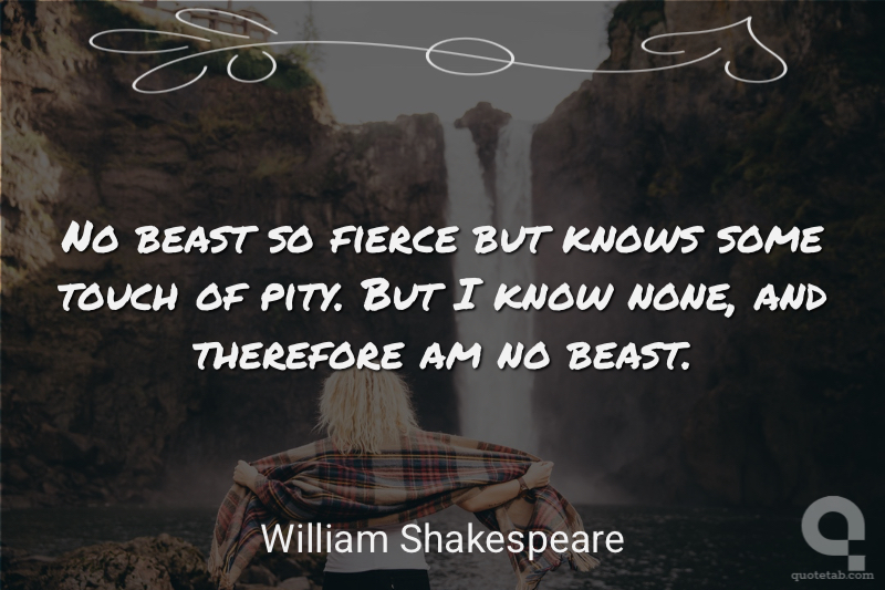 No beast so fierce but knows some touch of pity. But I know none, and therefore am no beast. William Shakespeare