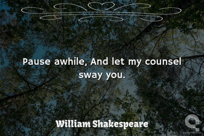 William Shakespeare Pause awhile, And let my counsel sway you.