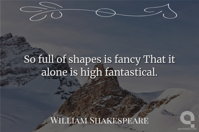 So full of shapes is fancy That it alone is high fantastical. William Shakespeare