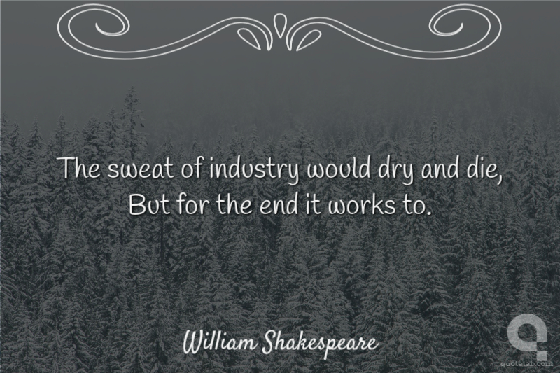 The sweat of industry would dry and die, But for the end it works to. William Shakespeare