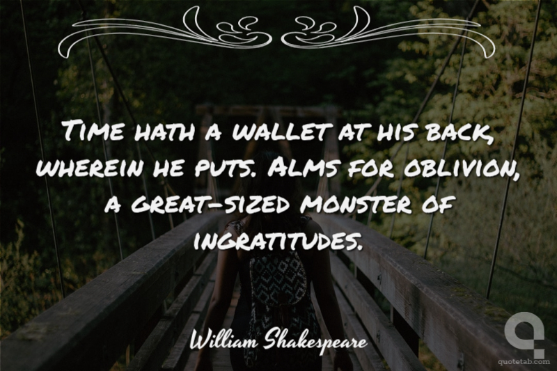 Time hath a wallet at his back, wherein he puts. Alms for oblivion, a great-sized monster of ingratitudes. William Shakespeare