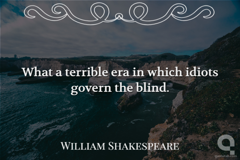 What a terrible era in which idiots govern the blind. William Shakespeare