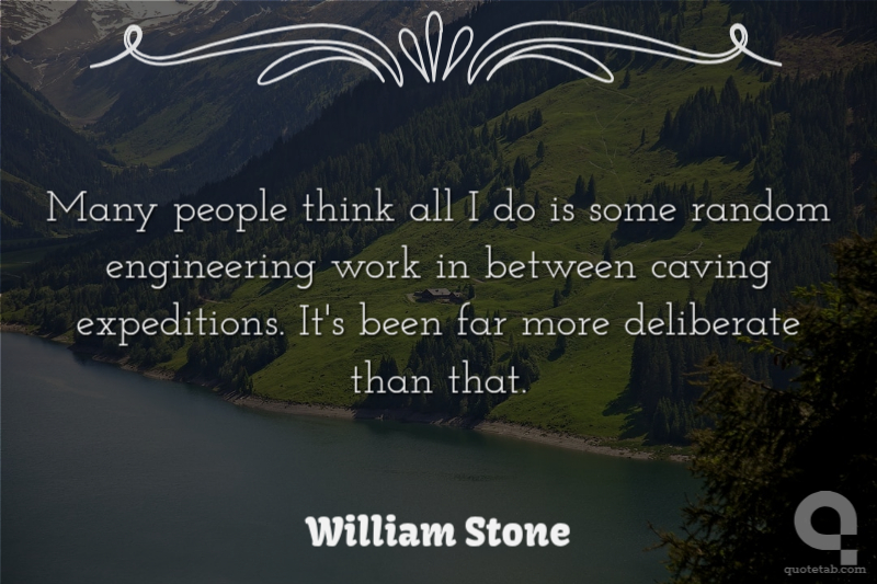 Many people think all I do is some random engineering work in between caving expeditions. It's been far more deliberate than that. William Stone