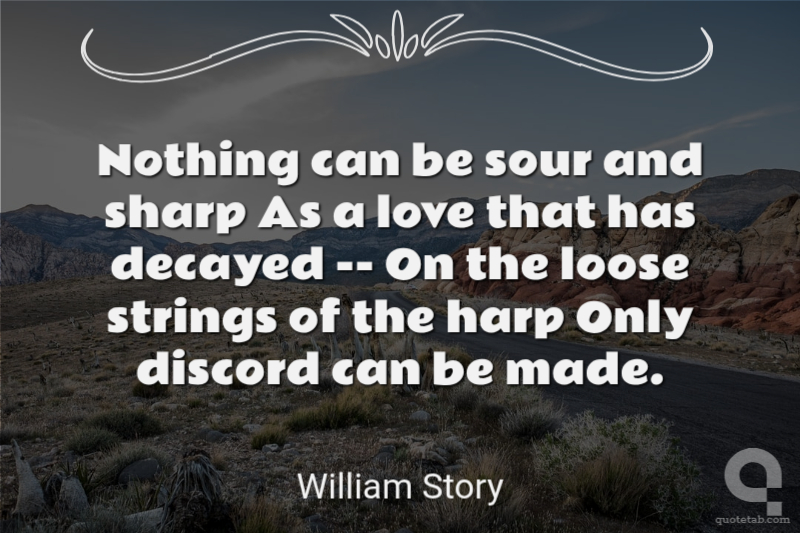 Nothing can be sour and sharpAs a love that has decayed --On the loose strings of the harpOnly discord can be made. William Story