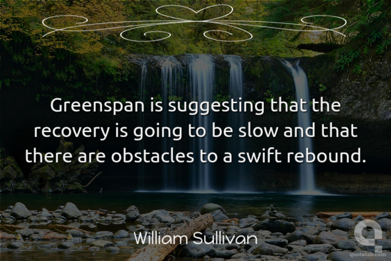 Greenspan is suggesting that the recovery is going to be slow and that there are obstacles to a swift rebound. William Sullivan