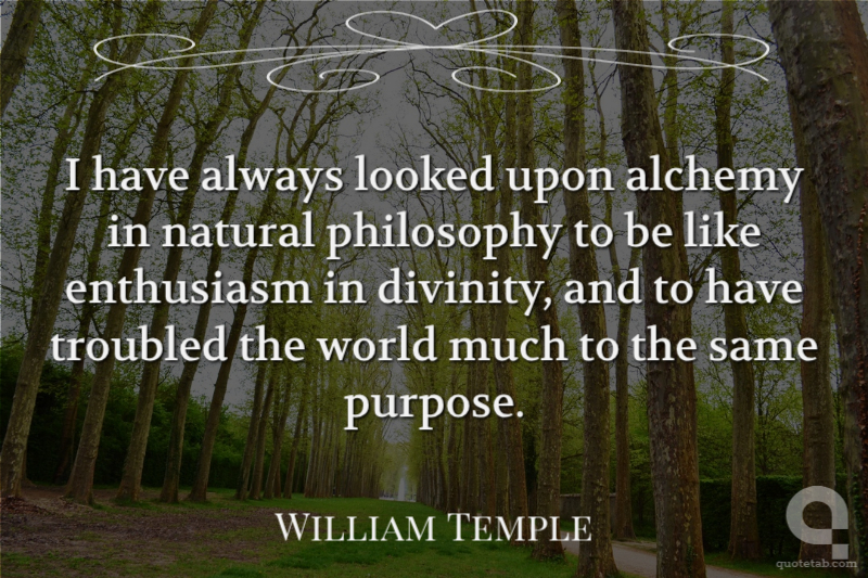 I have always looked upon alchemy in natural philosophy to be like enthusiasm in divinity, and to have troubled the world much to the same purpose. William Temple