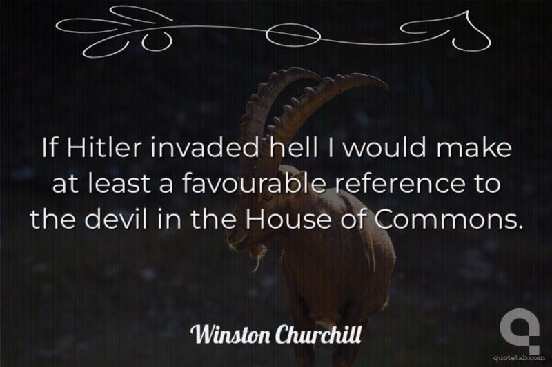 If Hitler invaded hell I would make at least a favourable reference to the devil in the House of Commons. Winston Churchill