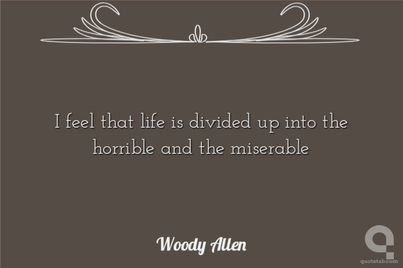 I feel that life is divided up into the horrible and the miserable Woody Allen