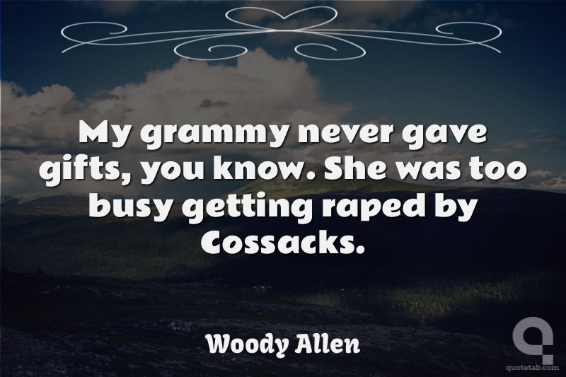 My grammy never gave gifts, you know. She was too busy getting raped by Cossacks. Woody Allen
