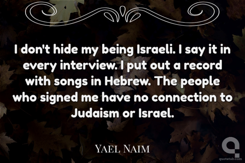 I don't hide my being Israeli. I say it in every interview. I put out a record with songs in Hebrew. The people who signed me have no connection to Judaism or Israel. Yael Naim