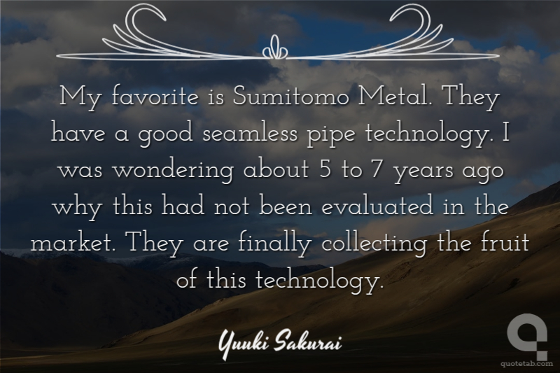 My favorite is Sumitomo Metal. They have a good seamless pipe technology. I was wondering about 5 to 7 years ago why this had not been evaluated in the market. They are finally collecting the fruit of this technology. Yuuki Sakurai